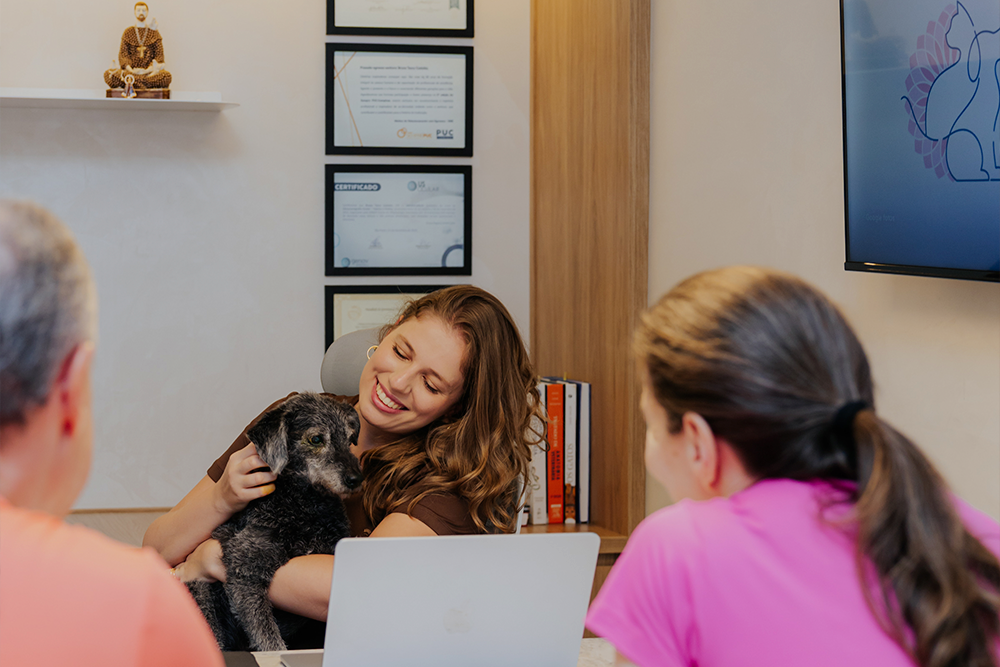 Ao final, explico ao tutor todos os achados do exame, apresento o diagnóstico (ou hipóteses diagnósticas) e proponho o plano de tratamento mais adequado para o caso.